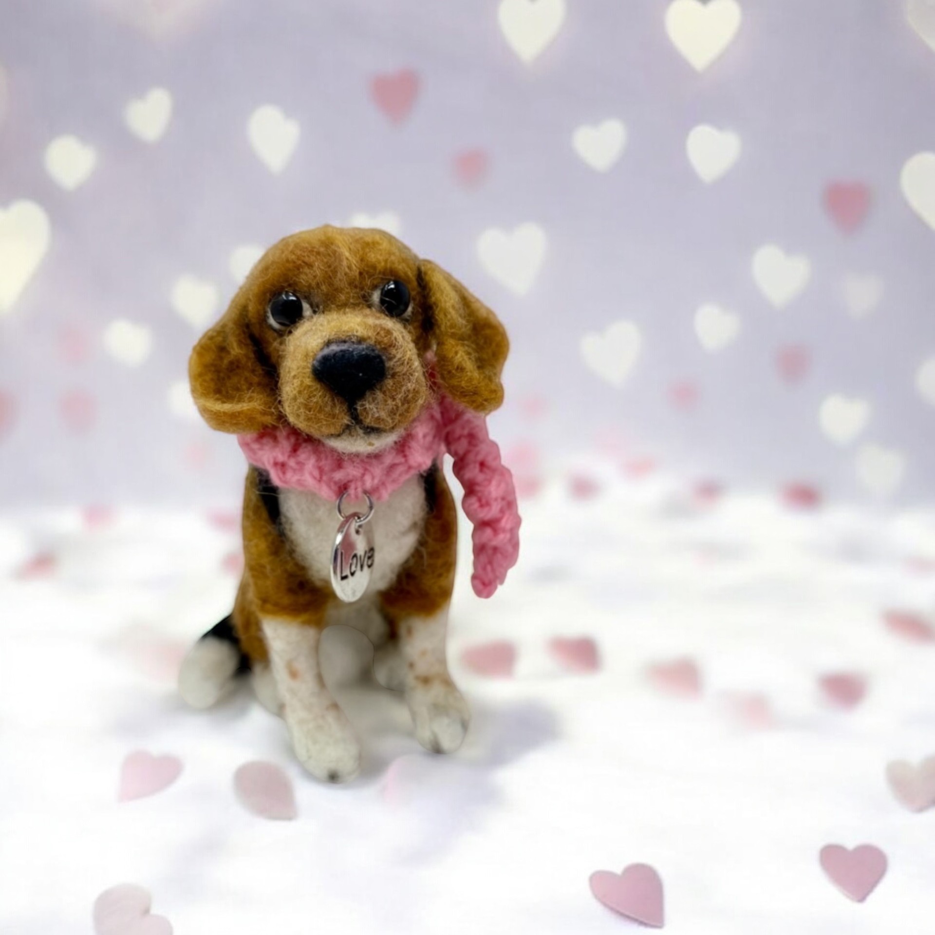 Handmade custom replicas of your pet, using 100% wool. Working from your photographs to capture your pets individual markings and personality. Add on knitted scarf, collar and silver heart charm. Let us create a special momentum or memorial of your cherished pet. Dog, cat, bunny, or any other furry/feathered friends welcomed!