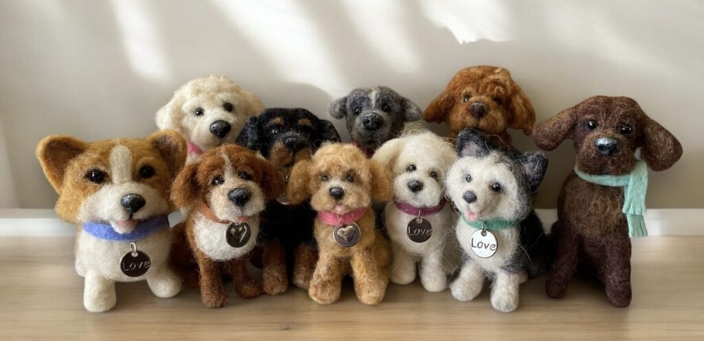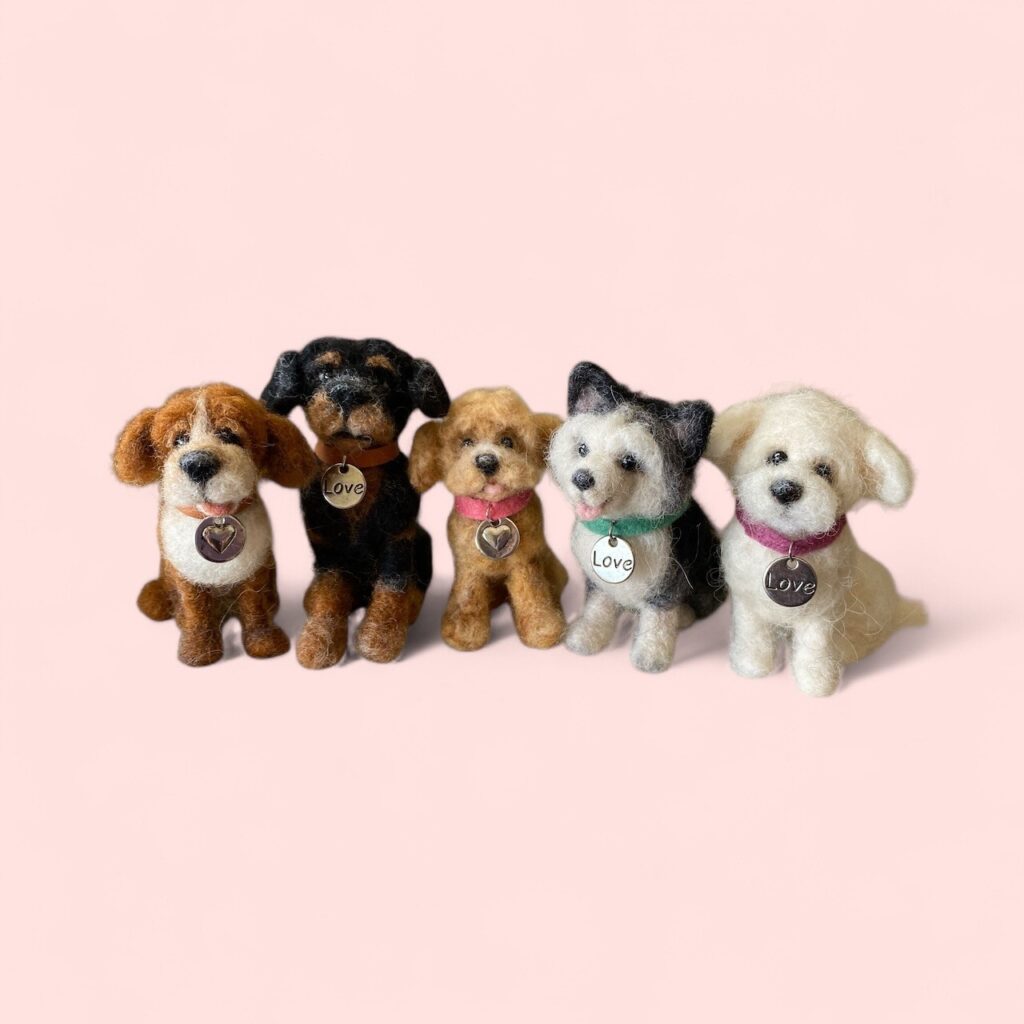 Each sculpture is created using needle felting techniques.