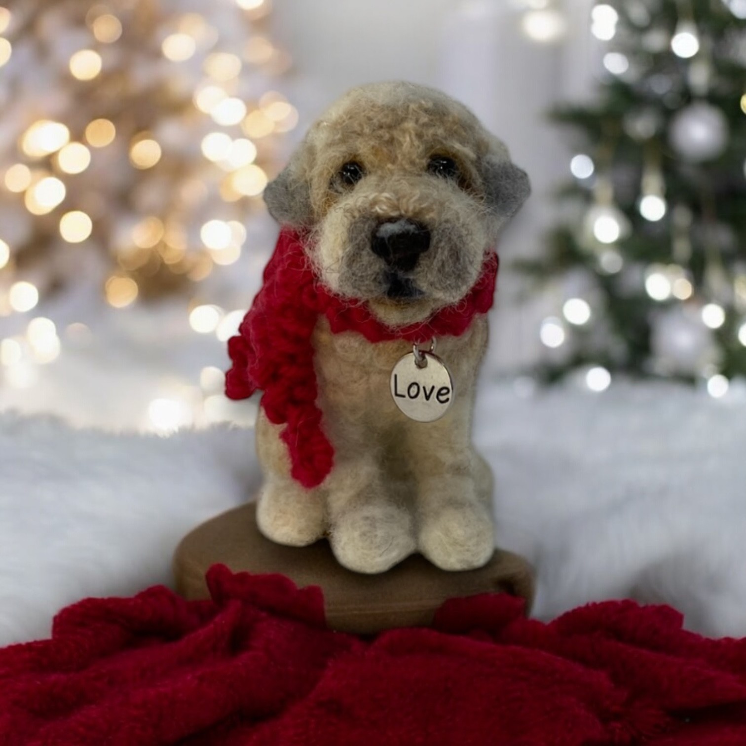 Cute mini sized sculptures of your beloved pet. Handmade in Needle Felting. Mini Felted Pets are smaller then the regular sized Felted Pets, with less detail, but just as sweet as their larger companions. Great to use as an ornament for the tree, or display all year round. Made from 100% wool fibres.